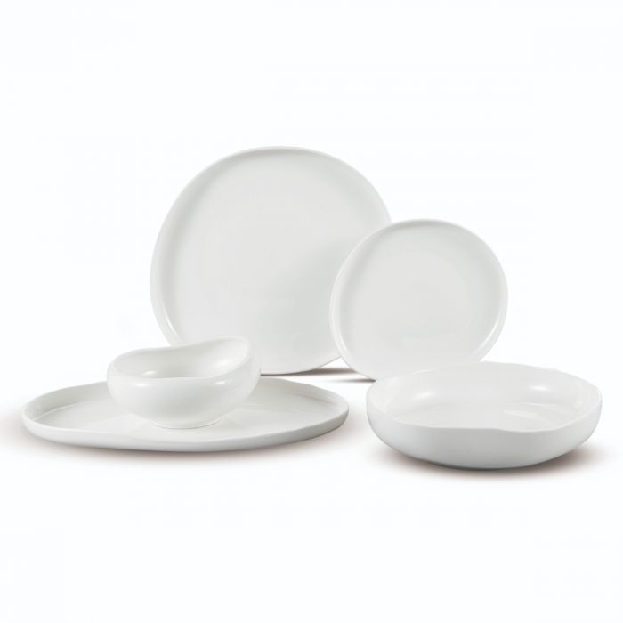 Het grote voordeel van dit stralend witte porselein is dat je gerechten de hoofdrol spelen. De kleur laat ingrediënten van een kleurrijke salade of pasta prachtig uitkomen. Bovendien is deze set te combineren met gekleurd tafellinnen, gouden bestek of houten accessoires.